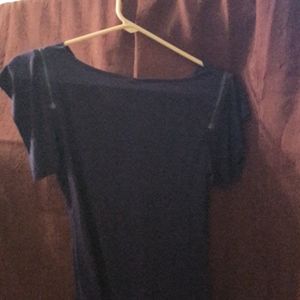 Cute purple top with zippers on both shoulders.