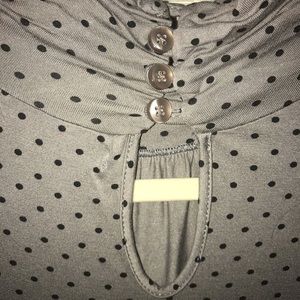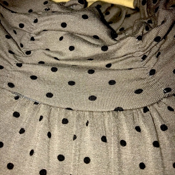 Turtle neck, short sleeve, polka dot shirt. Soft material.