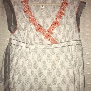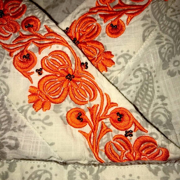V-neck top with beautiful embroidery around the neckline and sleeves.