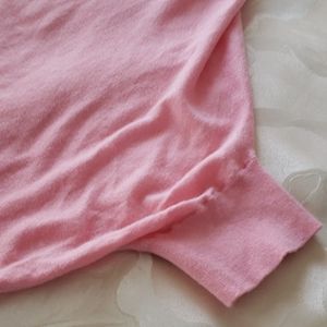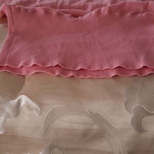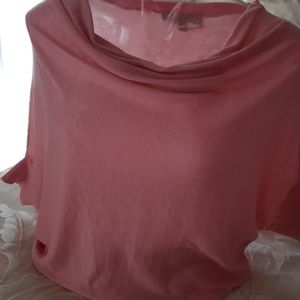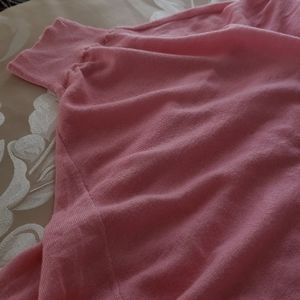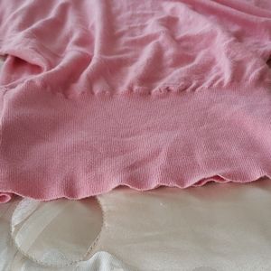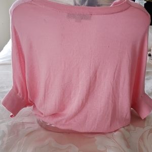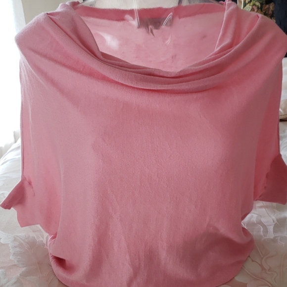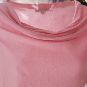 Cowl neckline..short cropped sleeves witj 5in cropped waistline ..Soft light pink