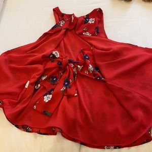 Red floral blouse. High neck top that is open in the back and ties in the back as well. Super cute!