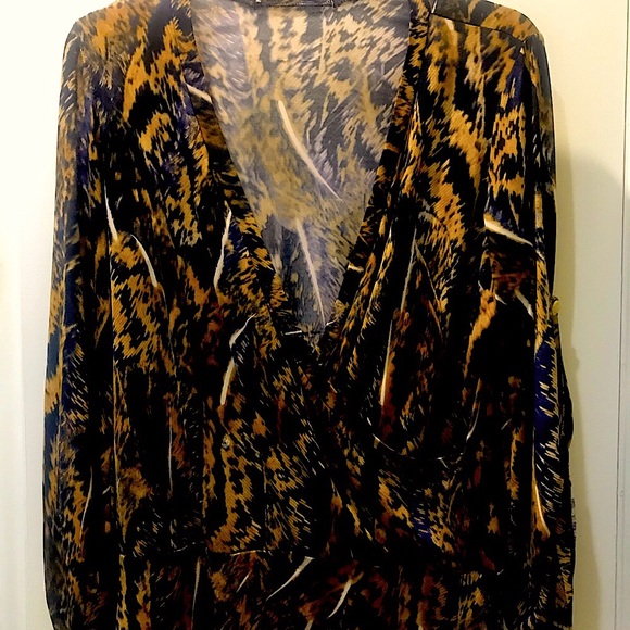Top is in gold and have, cross over type can be dressy or casual long sleeves
