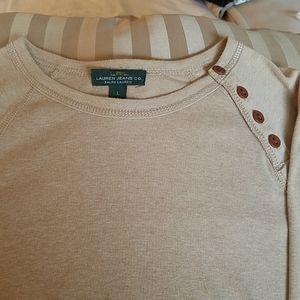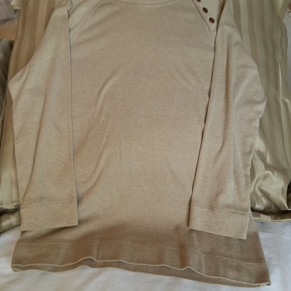 Three quarter sleeve top with buttons down side of neck