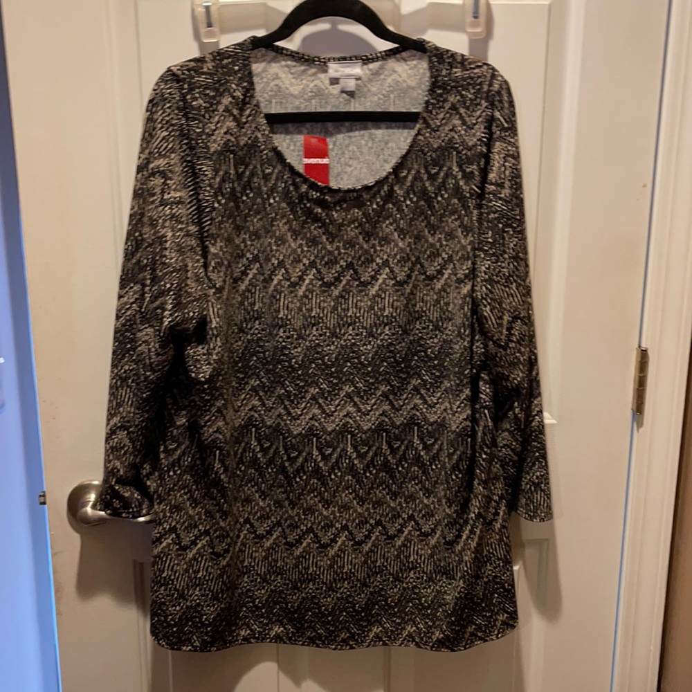 Brand new top multi brown/ black in color. Log sleeve