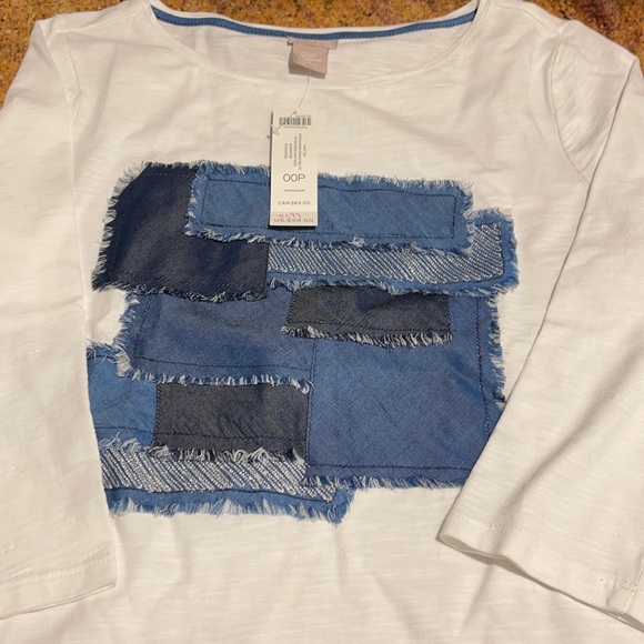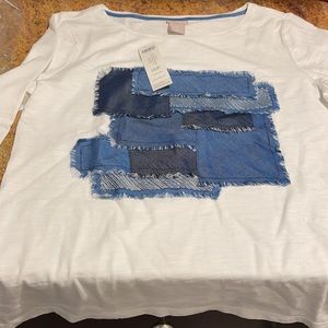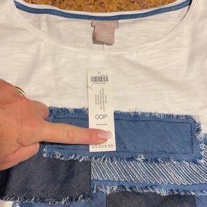 Chico’s knit top ( patchwork denim ) size xsp new with tag