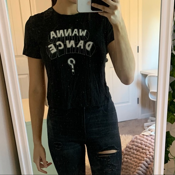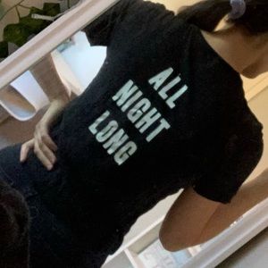 Short sleeve fitted top, very soft, black with white lettering