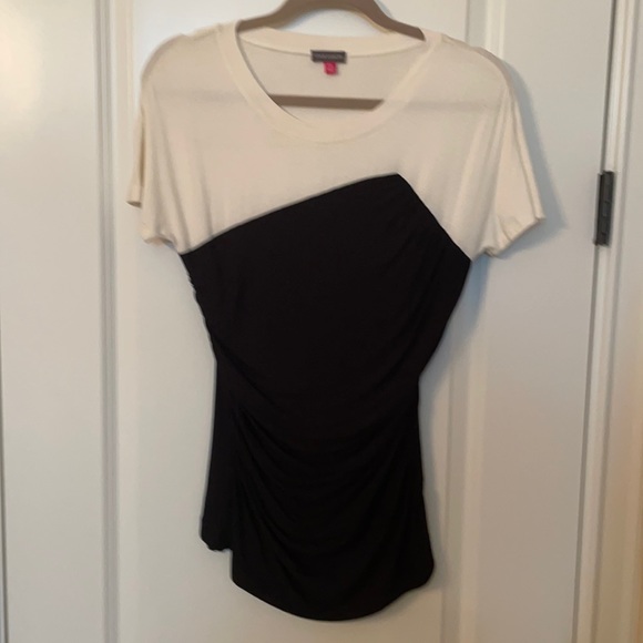 Black and white top with rushing on sides