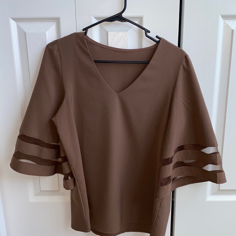 Great for back to the office! Light brown very flattering! I am 5.4 125lbs and covers the backside. Can wear with leggings or dress pants fits like a medium