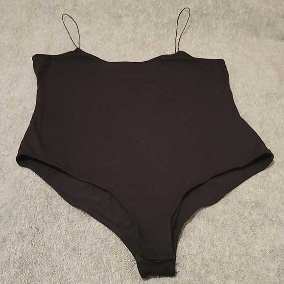 76% Spandex 24% cotton snap bottom with spaghetti straps.