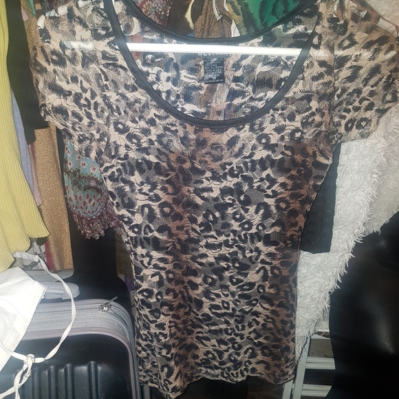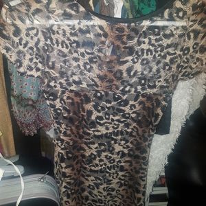 animal print is all the rage. lace covered and short sleeved.