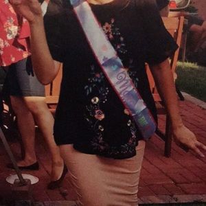 The detail on this top is to die for! Quality material! Super cute! On the lose side…well below the belly… worn once to my baby shower!!