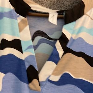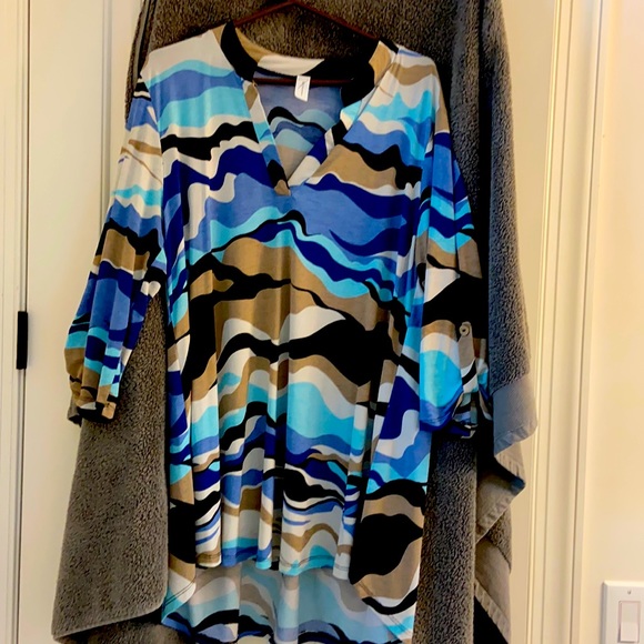 Tunic top. Beautiful blues cream tan black. Longer in back for full coverage.