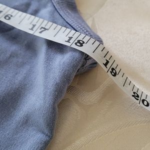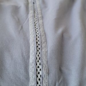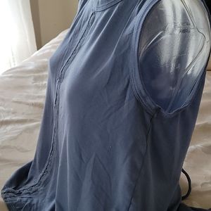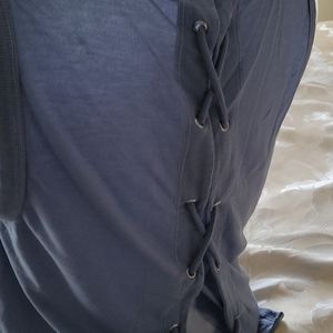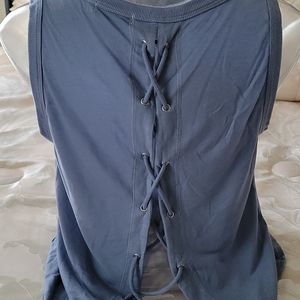 Sleeveless..shoelaced back..rounded neckline vertical front detail..bluish gray color