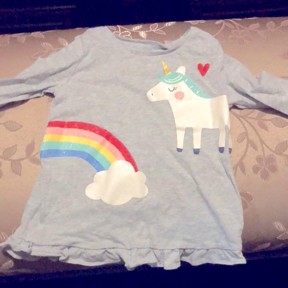 Print long sleeve Tee shirt with ruffles at bottom