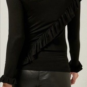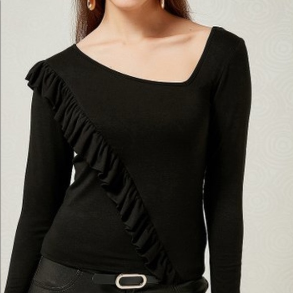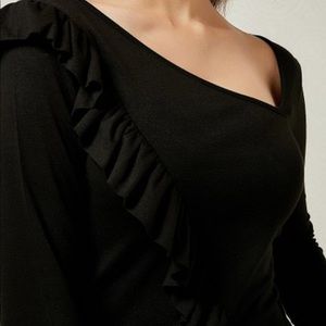 beautiful long-sleeved women's top with ruffles at the front and back,Ruffle Accent Asymmetrical top women, 95% Viscose 5% Elastane, final offer no more discount