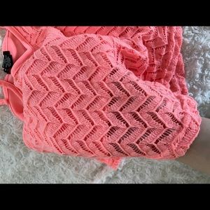 The first layer is see through, there’s a second layer that’s not halfway down the shirt. Look closely at pictures to see