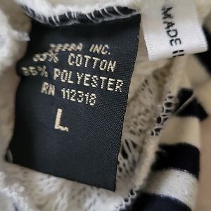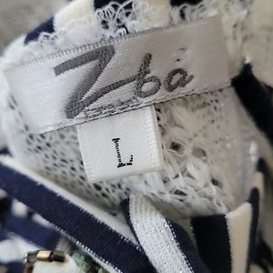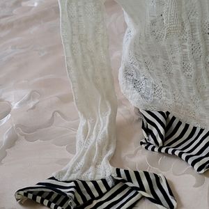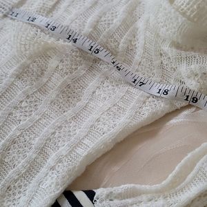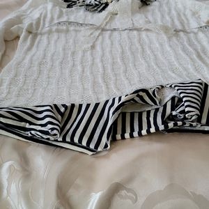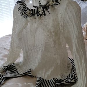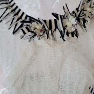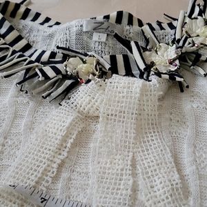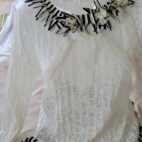 Offwhite 3 flower inlay at neckline blk/white trim on long sleeves & at waistline
