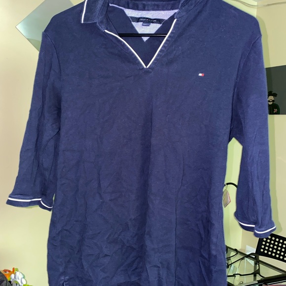 Navy blue collared top with white outline