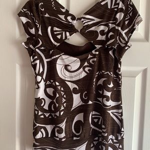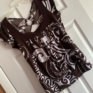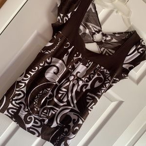 No size tag. I believe it fits like large. Armpit to armpit - 17”