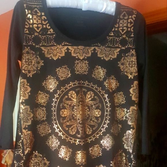 Lucky Brand black with gold embellishment, size XS long-sleeve top, 50/50