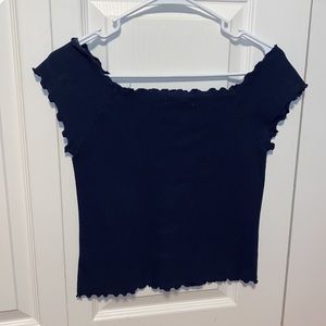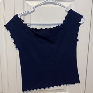 Dark blue ribbed on the shoulder top