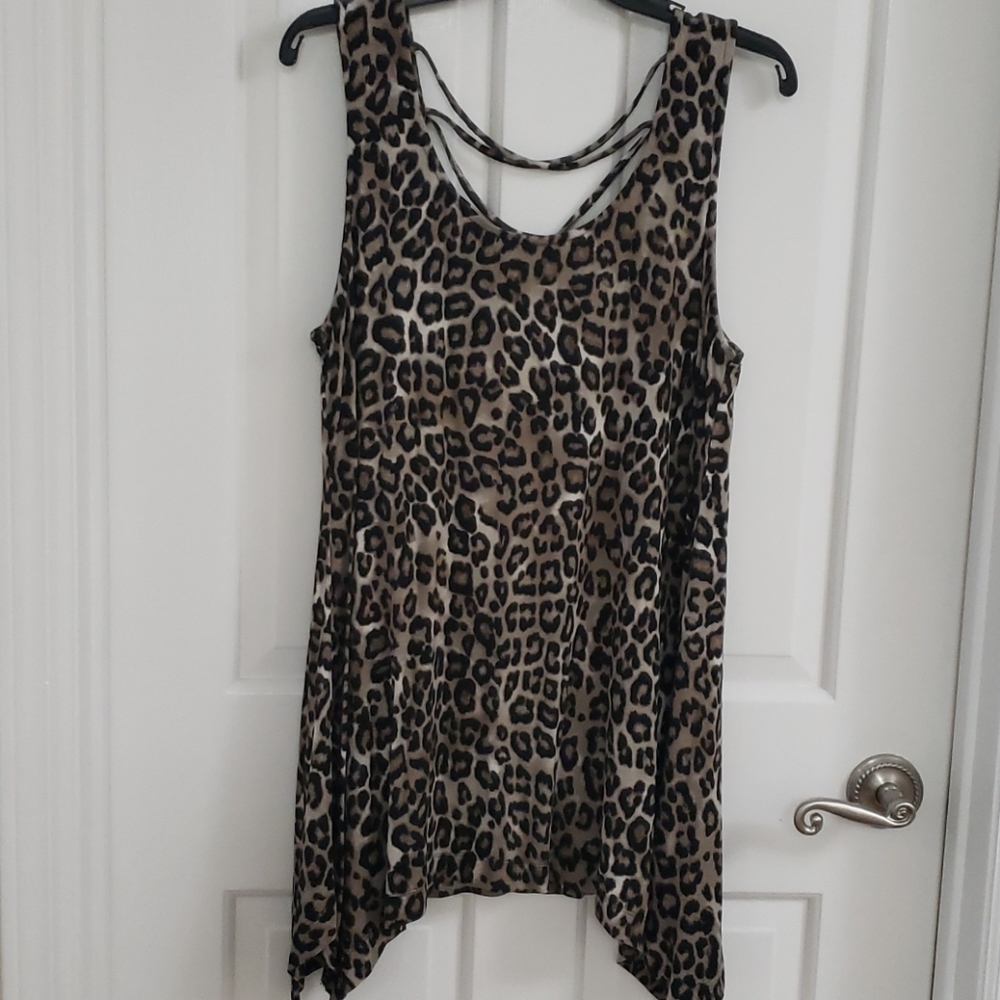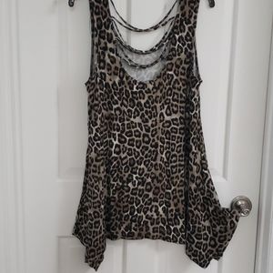 Leopard print sleeveless round neck shirt
