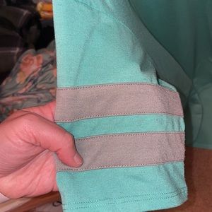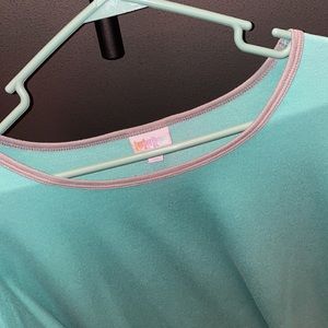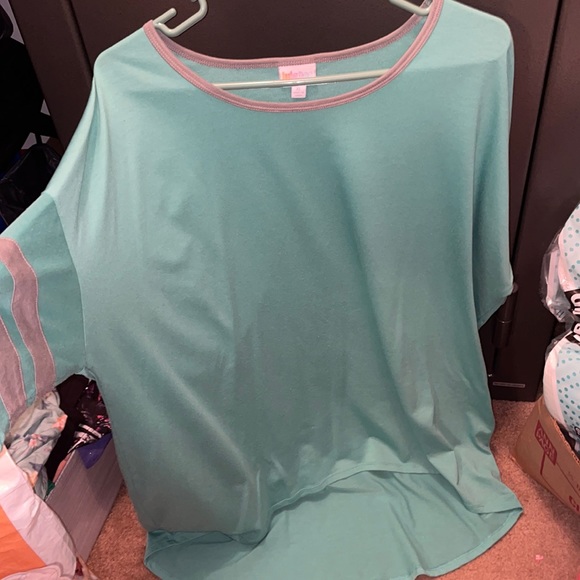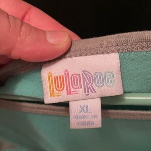 Size XL Lularoe top. Mintish color. Has grey stripes on sleeves and around neck. There is some piling noted in one picture which is due to type of fabric it is. Could be shaved off with fabric razor. In excellent used condition. Washed and dried per LLR guidelines