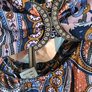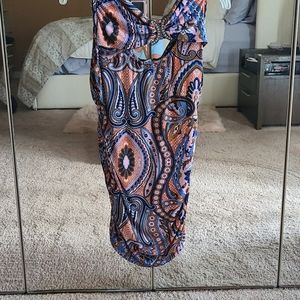 It's along top with all different cars. Low in the front .the back is like a crossback with the attachments of circl on both sides.