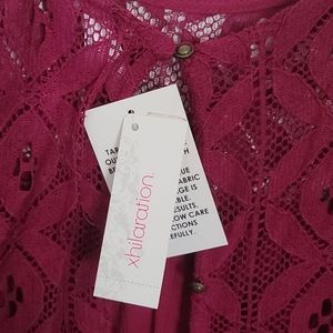 Purple tank top or cardigan wear it open or button up top part has lace brand new