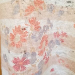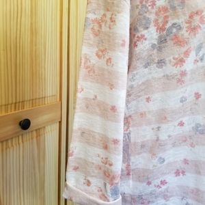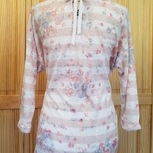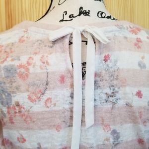 Very lightweight, somewhat sheer sweater, with high-low feature. Top has a keyhole back with tie closure. Super cute and super comfortable.