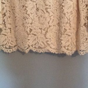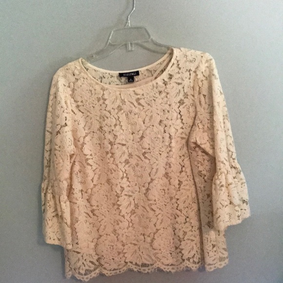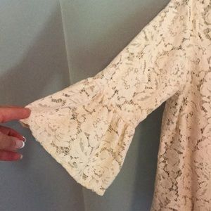 Ivory cami with lace overlay. Bell sleeves and scalloped bottom.