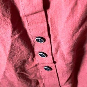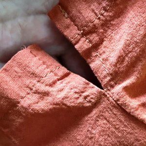 Nice summer top in a deep orange, pictures do not show the real color. The top has a 2 inch hem slit The maaterial is 35% cotton and 65 % polyester