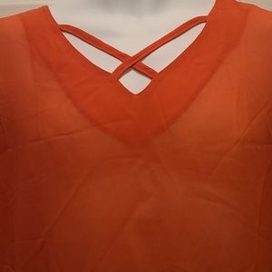 Orange sheer top with criss cross detail in front. Can be used as a beach cover-up as well. 32 inches from shoulders to hem. FYI: Is an XL but fits more like medium to Large. NWT.
