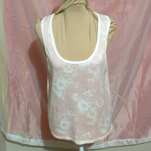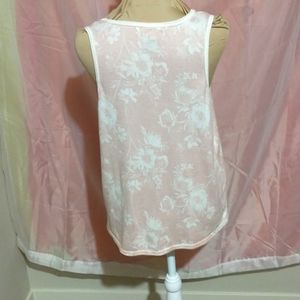 Tanktop with wide straps, and cream and baby pink floral pattern design.