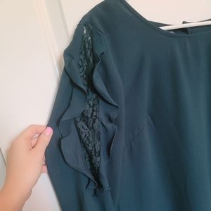 Maurices long sleeve blouse with ruffle and lace on sleeves and buttons down the back. In excellent used condition. Smoke free pet friendly home.