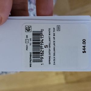 Spring Ditsy Brilliant white 3/4slv Gillian Lace Up BK Top