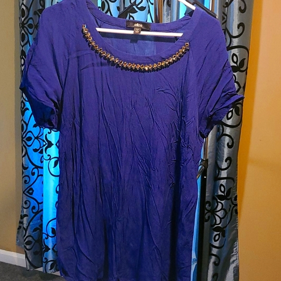 Blue Top with blue and crystal bling around neckline slight stretch size Large 18/20