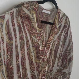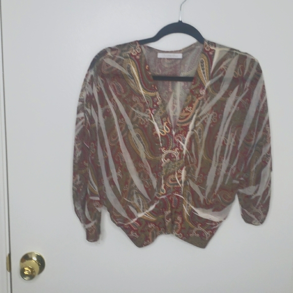Distressed sheer top with wide elbow length sleeves.