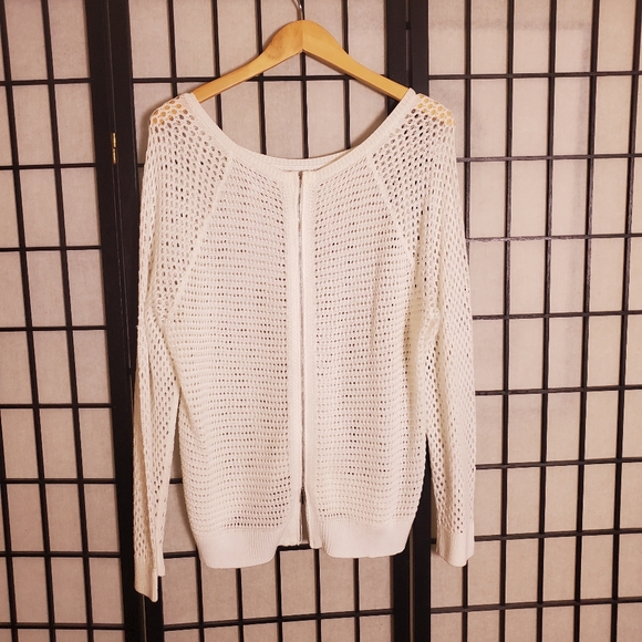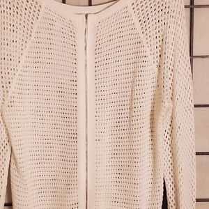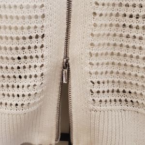 White keyhole top. Can be worn without an undershirt or as swimsuit cover up! Silver zipper zips from the bottom up *one minor snag on the sleeve (see pic)