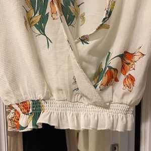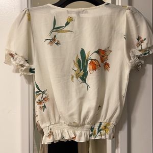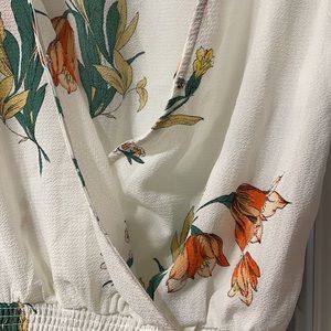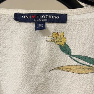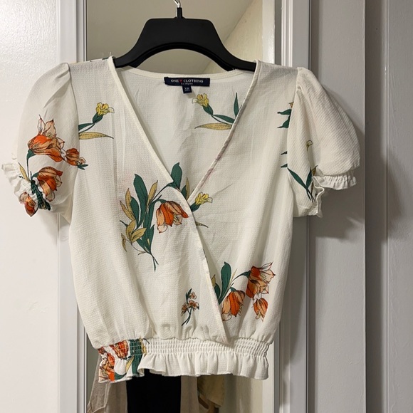 Has a tiny little dot of a stain underneath the size (pictured) and it doesn’t blend from the outside.