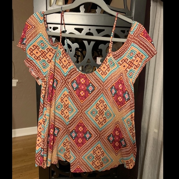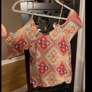 Gently used great condition size medium top. Spaghetti straps with off the shoulder short sleeves.