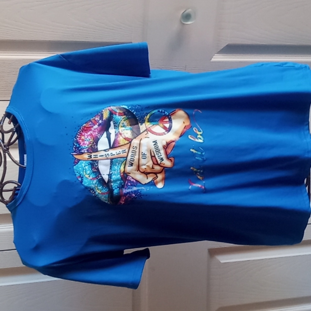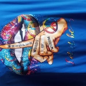 Whisper words of wisdom tee. Polyester/spandex blend.