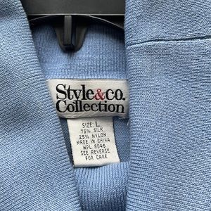 Style & Co. blue cowl neck top short sleeve size large excellent condition