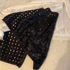 Long sleeve white and black shirt, the bottom is let her, airy and comfortable. Really cute with leggings and booties