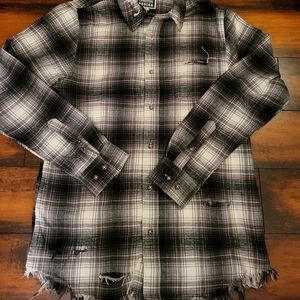 Items are distressed, cut, ripped, sewn, bonded, etc, therefore there will be fraying, discoloration, tears, stains, smudges, or stray threads.