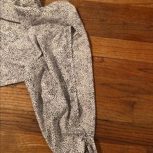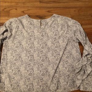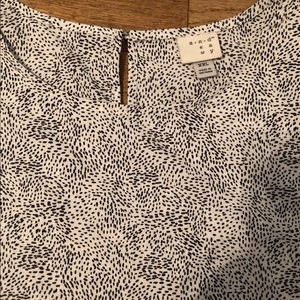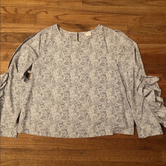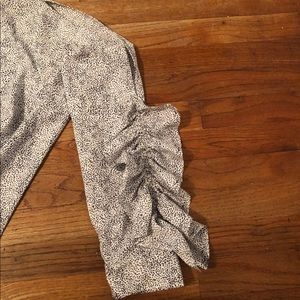 Cute, fun, black and white print cold shoulder top with ruffles on the sleeves. Has a keyhole back. XXL like new.
