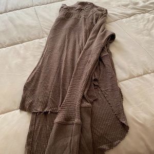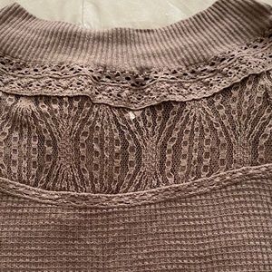 Flowy Light-Brown Top from Free People with Tight Long Sleeves and a Lacy Neckline.