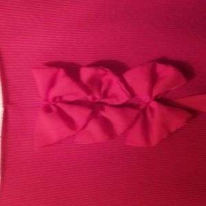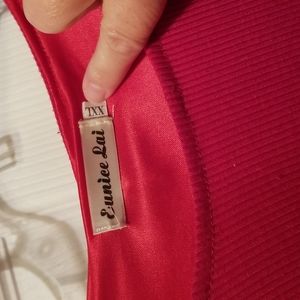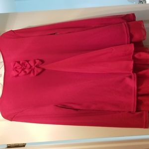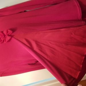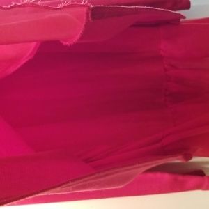 Red cotton with satin lining and sheer ruffles with 3 bows on the back. Worn a few times, downsizing closet. 1 now is fraying a bit I'm not a seamstress.