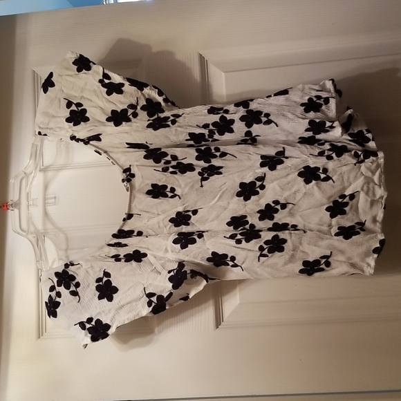 Rayon embroider top. Worn several times washed once. No damage. Too short for my comfort zone and downsizing my closet.