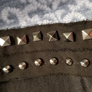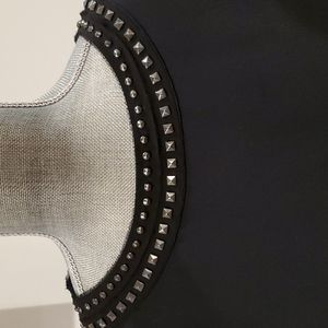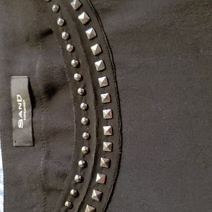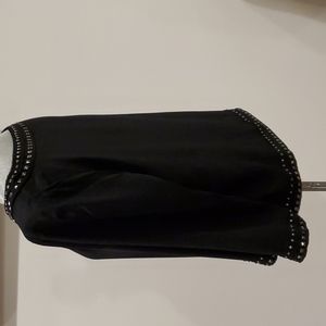 Black top with metal details, sleeves are 3/4, perfect condition. Purchased in Copenhagen, Europe. Length about 22", shoulders 16", chest is 22"